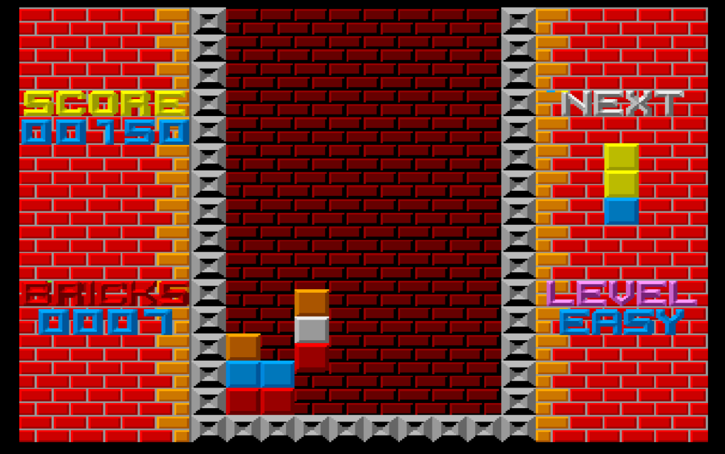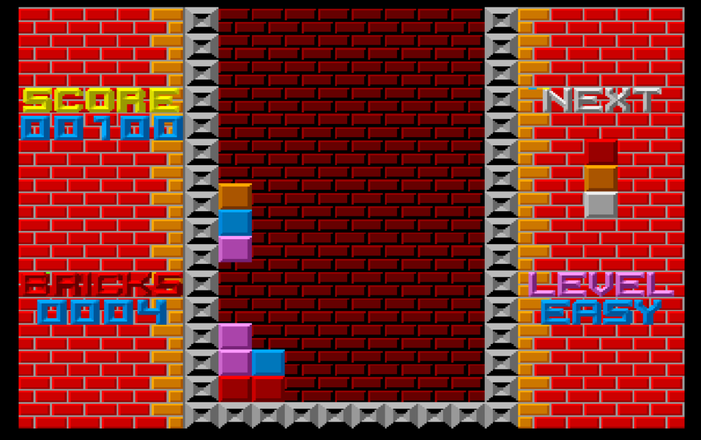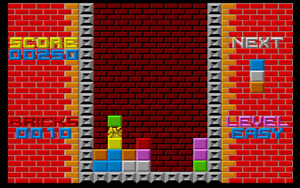 On the left and right you have a nice brick background, and the score and brick count is shown on the left, and on the right is your next piece, along with the level difficulty