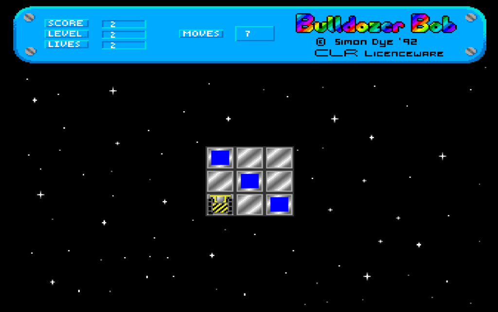 In this lovely well made puzzle game, You drive a bulldozer, and must move blocks into a line or close together so they disappear, you can push them from front to back, or even left to right, and vice-versa as well, you need to do some pushing to align them all up together, then you can complete the level once they stick in a line