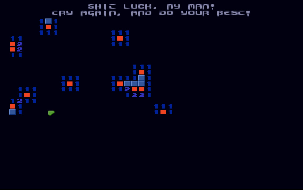 NOTE: When the game initially loads, please do not bypass the first screens, then move your mouse near to the middle of the screen or near to it, click, and draw the size of the playing area, then you need to click inside the playing area to select the number of bombs to add – If you fail to do this correctly, the Game will Crash, I never knew this initially when play testing it, Seems to be an in-game bug sadly