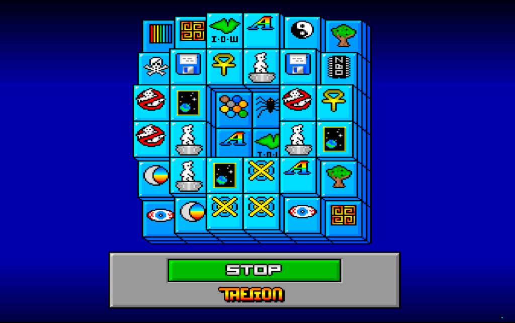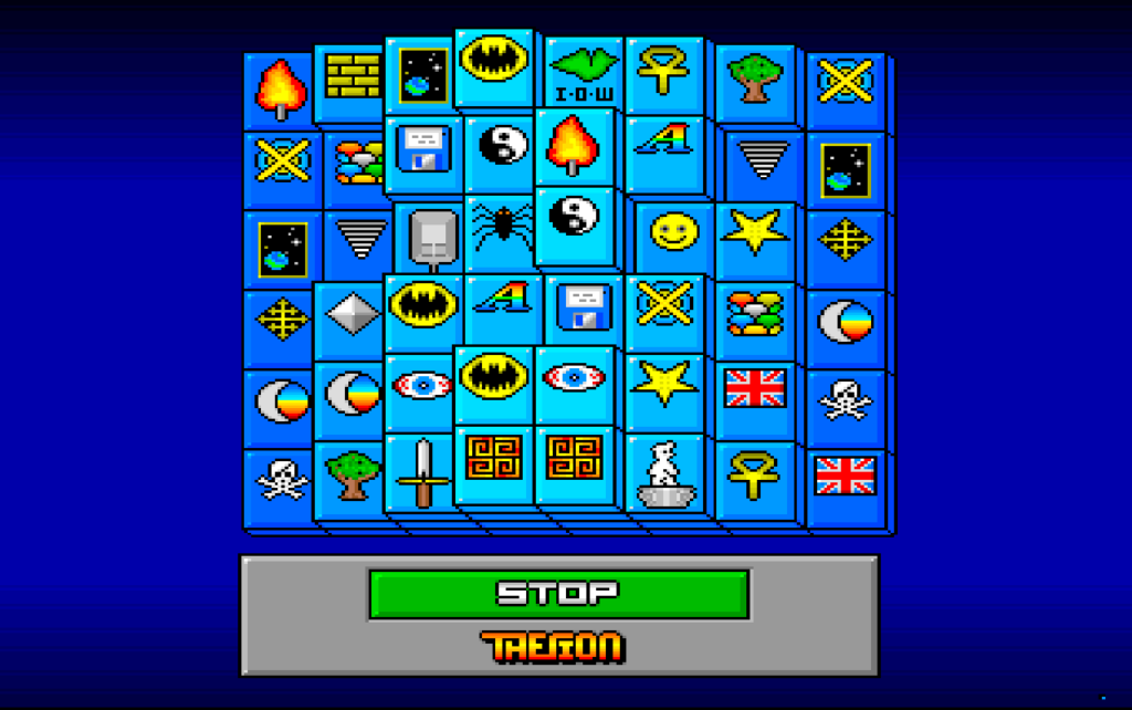 You should now see a pile of tiles on the screen, This pile contains 120 tiles. There will always be 4 of each tile in a pile. The pile can be up to 4 tiles high, the higher the tile is the lighter the shade of blue.