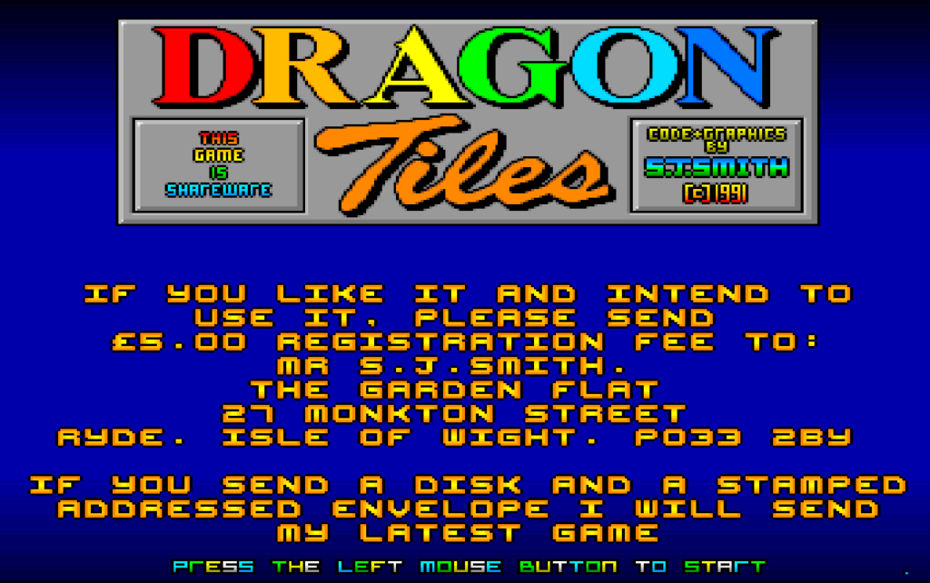 If you get to a position in which you can remove no further tiles then all you can do is click the mouse in the stop box, this will return you to the intro screen.
